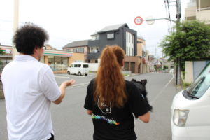 アフロ社長(左)、わんこを抱っこしている職員さん(右)